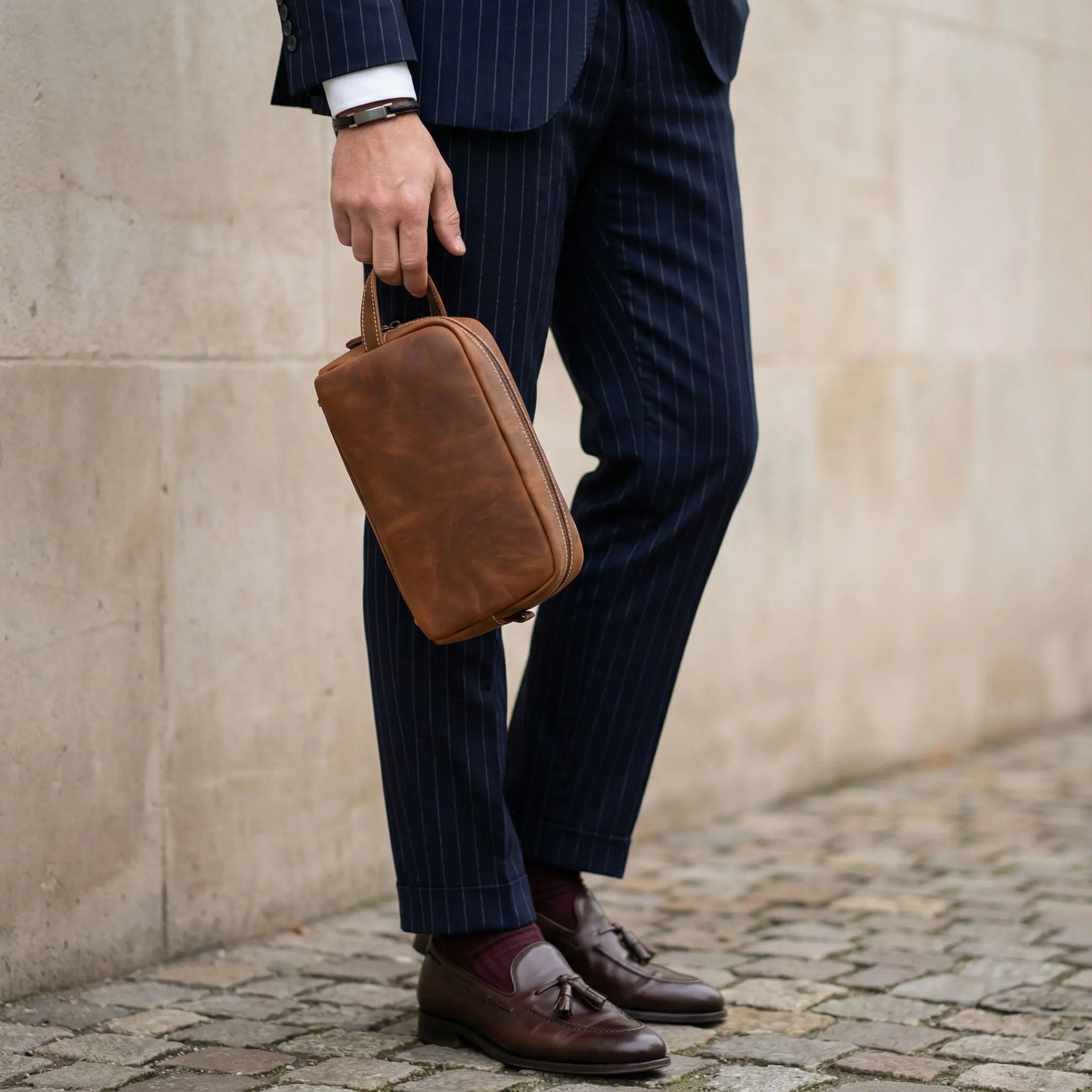 Full-grain leather is the highest-quality cut of leather, taken from the top layer of the hide and left completely natural. Unlike corrected or split leathers, which are sanded or coated, full-grain keeps its original strength, character, and durability - developing a rich patina that only improves with time.